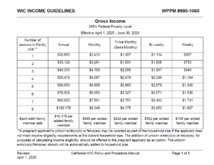 To qualify for WIC services, you must meet income guidelines, live in California, and be in a category served by WIC:
